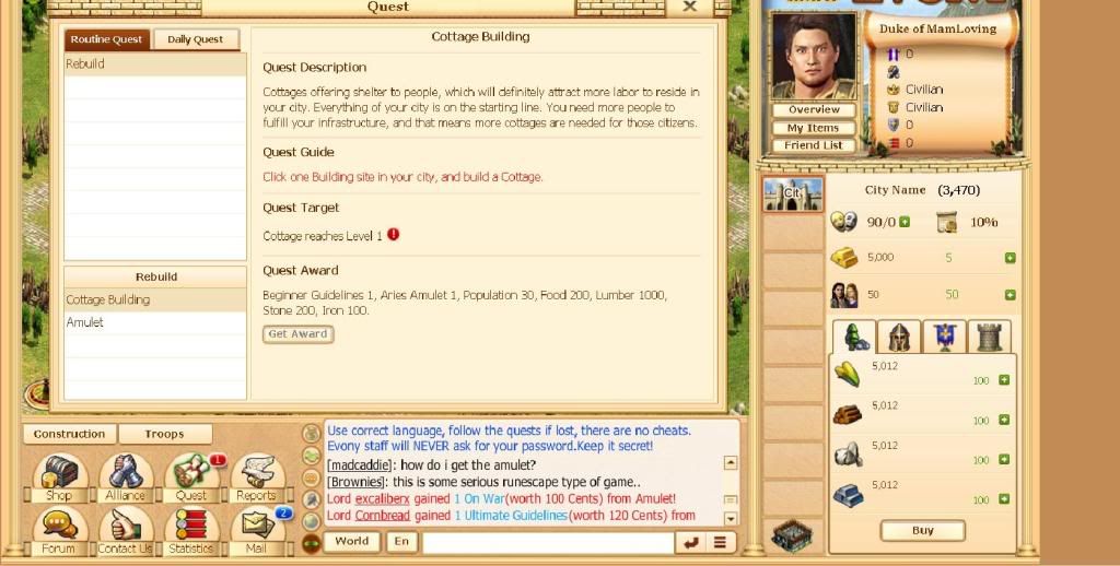 5. Quests told me what to do, after a while of not really being sure what I should be doing, I clicked on the quests button and that seemed to give me a good idea as to what I should be doing to progress in the game.